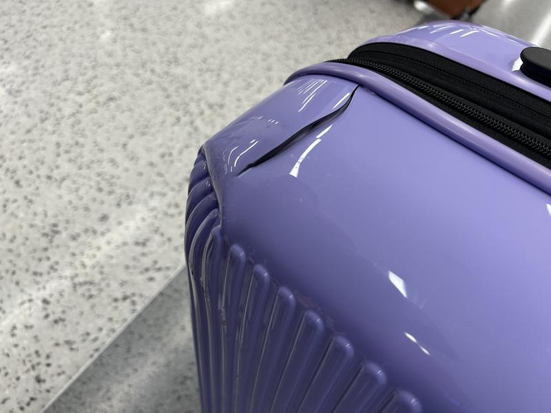 I purchased this for my daughter to surprise her Christmas morning with a trip to Disney. As soon as we left JFK and arrived to Orlando, we saw that her luggage was with a 4 inch crack at the top. Nothing we could do during our trip, so upon our return to JFK, we found that crack was made worse, as well as a deep dent in the same corner of the luggage. I have reached out to Macy’s and Delsey paris for an exchange