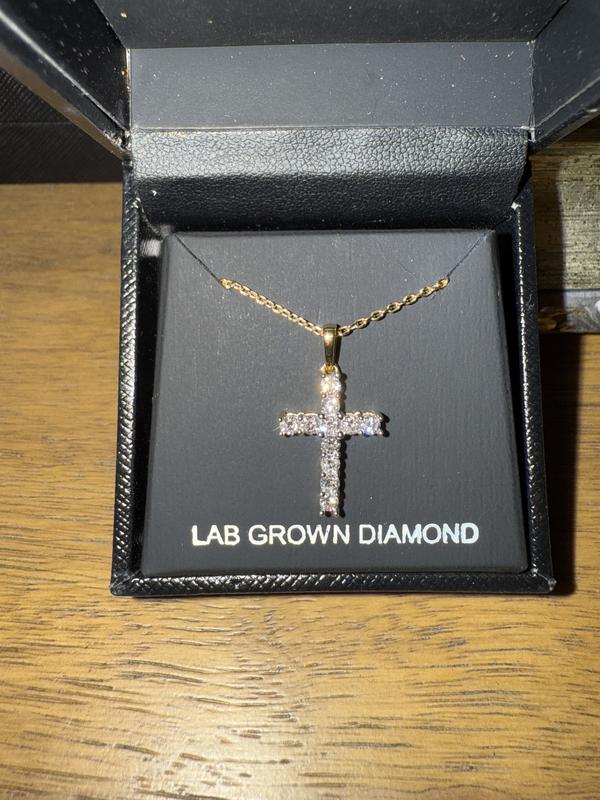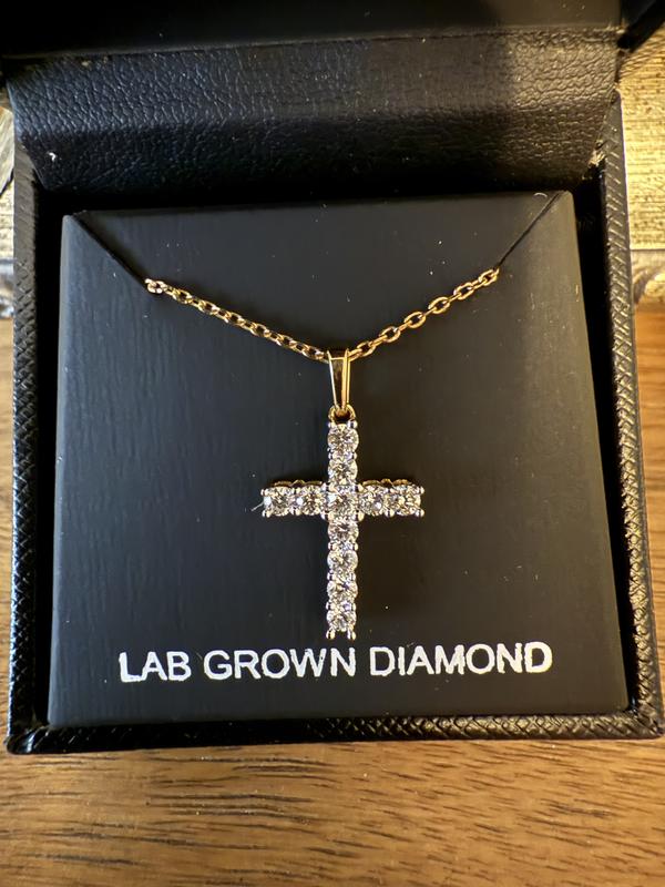 Lab-Created Diamond Cross 18" Pendant Necklace (1/2 ct. t.w.) in Sterling Silver or 14K Gold-Plated Sterling Silver