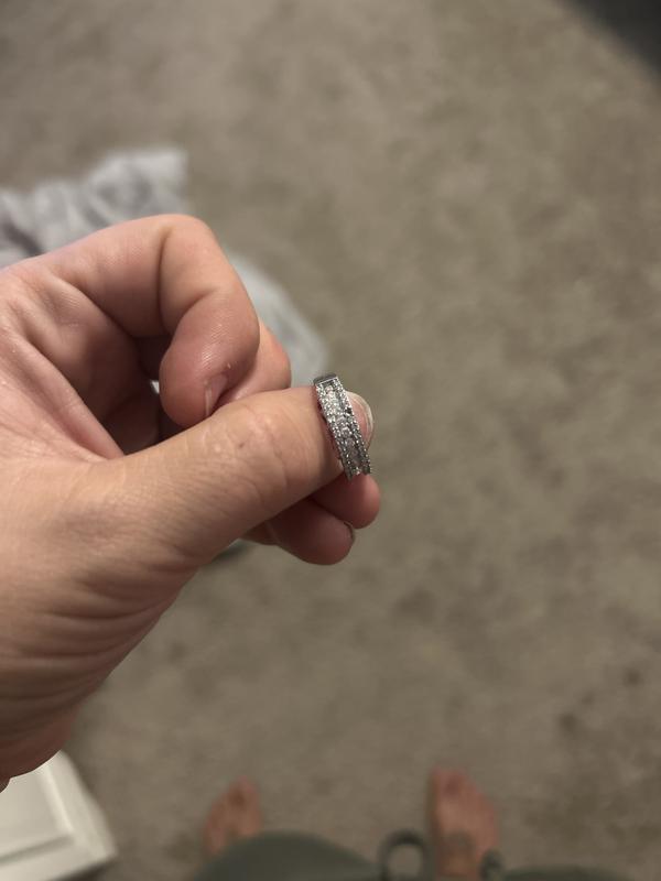 I ordered this ring online and when it arrived I opened the box and was overwhelmed with its beauty! It is a perfect ring. The sparkle is more than I expected. It’s very shiny and yet almost has a delicate look. The size is perfect to wear alone or to stack with other rings. I’m very happy with my choice.