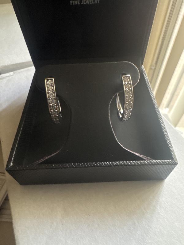 These earrings are better than I imagined when I ordered them online. The weight suggests really nice design and materials, the diamonds simply shine, the size is just right, and the design is a nice alternative to the typical round style. The recipient was thrilled!