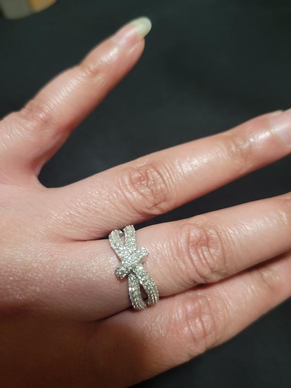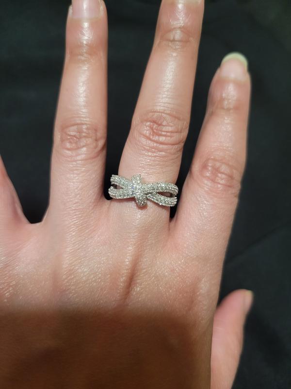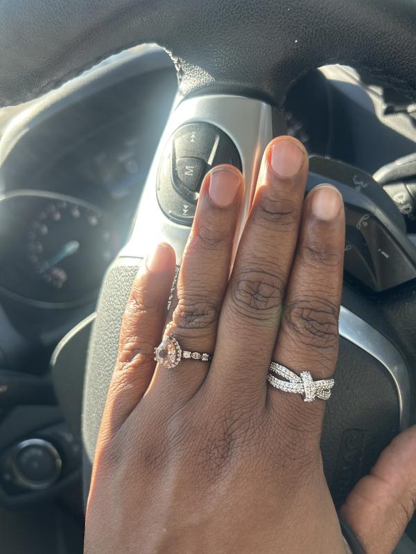 This item is not as pictured. It is not pretty. The diamonds are cloudy and look cheap. If you buy and want to return, make sure you do it within their 30 days or you'll be stuck with the ring like I am now :( I would be happy with at least an exchange, but there is no way to do that either.