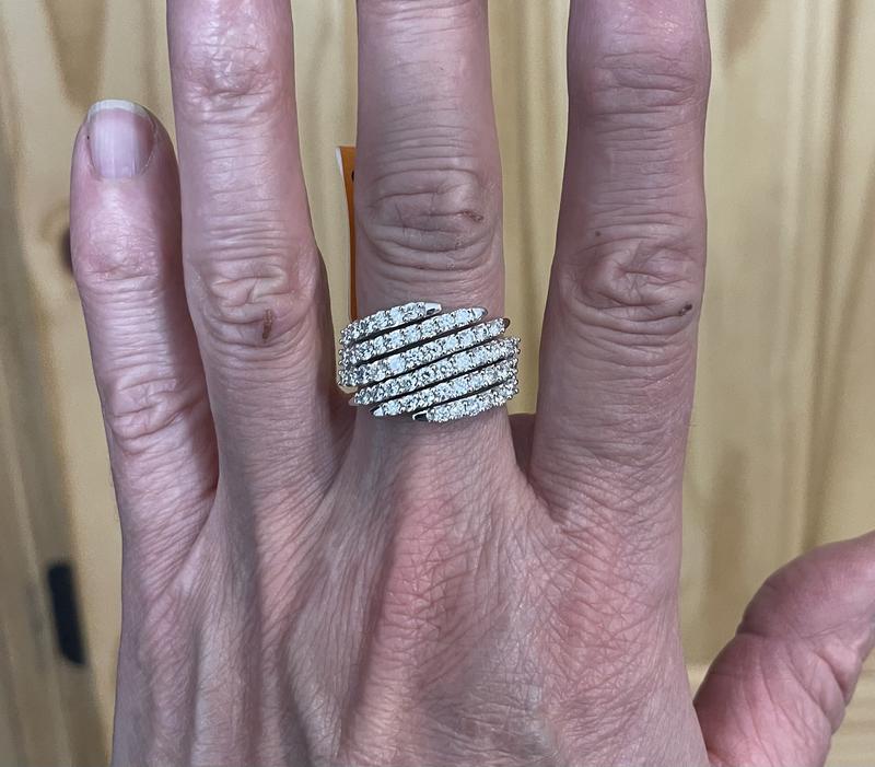 My wife loved this ring. Purchased as part of an anniversary gift, huge hit! Looks even better in person.