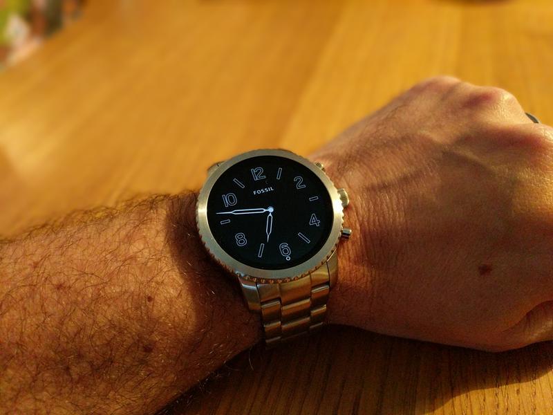 Fantastic, a really beautiful watch. A solid piece of precision engineering finished off with a high quality leather strap. My first impression from the packaging was that Fossil is now on a level with Apple in terms of quality and presentation and I wasn’t disappointed at all when I took the watch out of its box and started to play with it. I was a little concerned at first about the lack of detailed instructions, but after several, frustrating, attempts at trying to pair the watch to my smart phone I eventually discovered that it was necessary to first select the correct language on the watch before starting the phone pairing procedure. This could have been mentioned in the quick start instructions, particularly for the likes of us Technophobes. Once I had overcome that very minor issue, I found the experience of discovering new features over the proceeding weeks to be very rewarding indeed. I’m a bit of a traditionalist when it comes to watches, however the attraction of complete connectivity with my smart phone, email, computer outlook calendar and my messaging applications has now outweighed my desire to wear one of my many classical mechanical timepieces, especially as I’ve selected the option of a traditional analog watch face. I haven’t yet found the need to explore the many available watch face options on the internet as I’ve been more than happy with the ‘Classic’ watch face, which came as one of the default options with the watch, particularly as I’ve managed to customize it to display the data and shortcuts that are of interest to me. I’ve found the drop-down menus to be intuitive and very easy to navigate, even for a person of limited multi-media aptitude such as myself, although I do believe that there are still many more surprises to come over the next few week as I continue to explore and discover the many options that I believe are available with this watch. Most of my working days are spent in meetings and being able to stay in touch with the outside world by a quick glance at my watch is ideal for me, and far more acceptable than having to continually pick up my smart phone every time it beeps – so annoying when you see other people doing this in meetings. My only niggle with the whole package is that the symbol on the charging pedestal is very difficult to see in anything other than very bright light. I’m not sure that it’s important to get the charging pedestal the right way round before charging the watch but if the symbol does need to be there then please make it more visible on the next generation. Having said all of that, I’ll give the watch a solid 10 out of 10 for quality, style, functionality and for dragging me into the 21st century. Thank you very much Fossil.