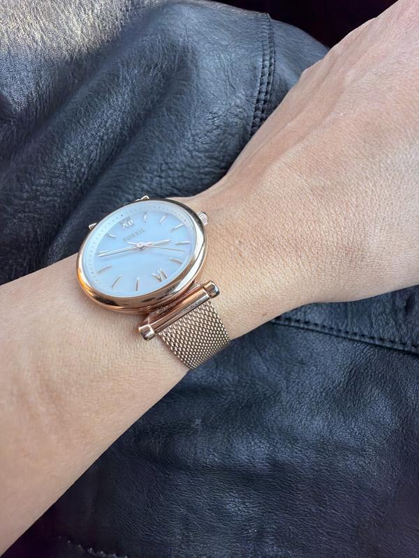 Gorgeous watch - perfect Valentine's day gift. Not too flashy, but perfectly classy and elegant. The mother of pearl face is subtle yet adds a lot of character, especially in the light. She loves that it goes with all her outfits.