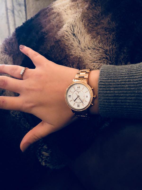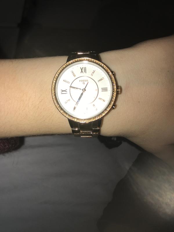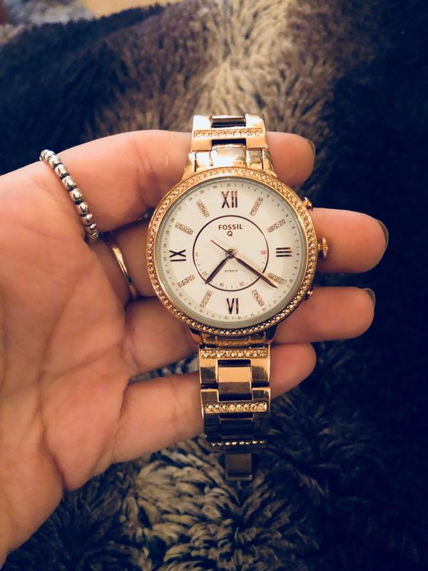 I was anxiously awaiting the watch to arrive and I must say when it did, I wasn't disappointed. Parcel arrived quickly and was very well packed. Watch came in a nice classic white box. First thing I noticed was how expensive and nice this watch looks. Bracelet was too big for me but it was easy enough to shorten it using its quick clips called Adjust-o-matic but it needed a little bit of get used to as the "lock" of the bracelet wasn't easy to open without short google search. Personally I prefer different type of "lock" for the bracelet. What I enjoy the most is the universal design. It is great to use it on a everyday basis and perfect choice for a night out or work event instead of wearing sport type smartwatch. Companion app is very easy to install, setup and use. Three functions can be assigned to each of its three buttons and all work great. My personal favorite is to control the music app, play, pause, volume down and up without reaching for my smartphone. Notifications are very intuitive to setup, very smart move from Fossil to let the hands to show me which notification or which person is trying to disturb my time. When hands show number 1 I know it is going to be my partner, and number 2 is my sister. Amazing. Very small downside of Virginia's notification feature is strength of its vibrations, even when setup as strong intensity they are barely noticeable when I am busy and focused on something else. Fossil allows me to control my step counts and sleep patterns as well, which is a great add on. This product has a fair price tag as I would expect to spend similar amount for a good looking watch without any smarts and these smarts added to it's design makes the watch worth the price. I can happily recommend Fossil Q Virginia to anyone that would like the features of a smartwatch but still wants the look of a modern timepiece that can be worn on every occasion.