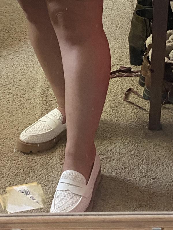 White fabric loafers with lug sole