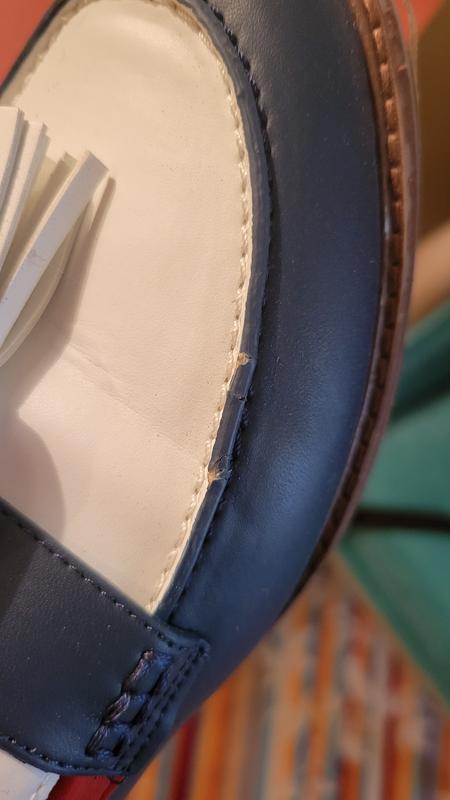 Pretty loafer even tho they aren't real leather. I had to reorder a 1/2 size smaller, and those fit great. Can't wait for spring so that I can wear them!