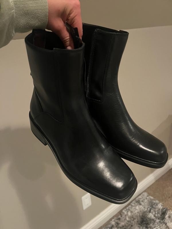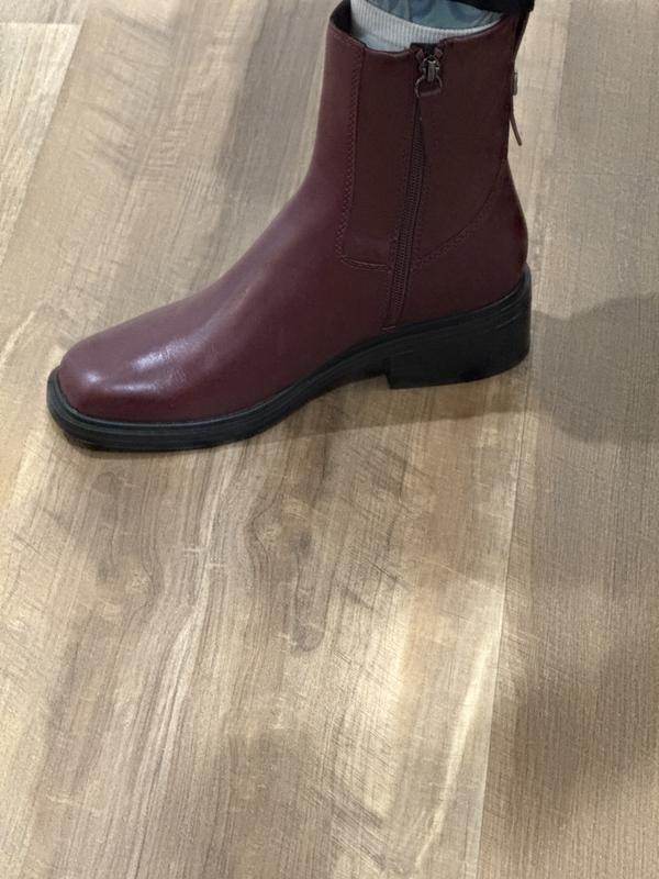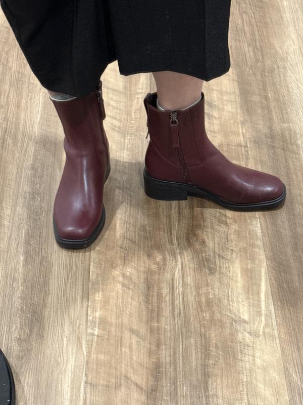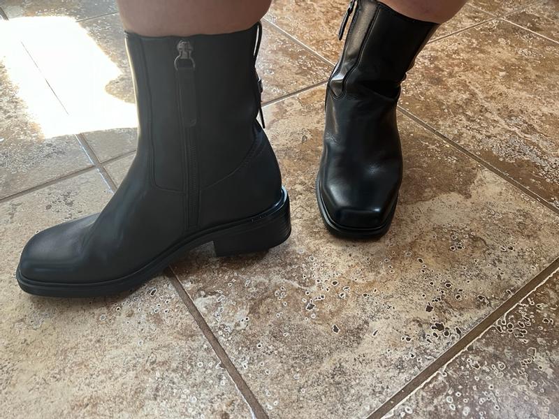 These are the most comfortable booties I have ever worn. The fit is PERFECT as someone who has a wide foot, and as someone who also has a tall arch and plantar fasciitis. I love how sleek and matte the leather is. These are for sure going to last me through the bad winter we are about to have!