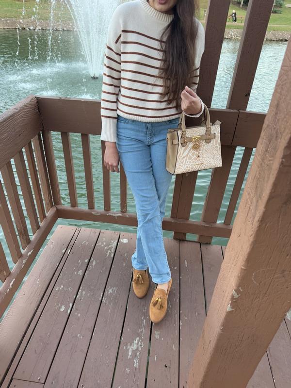 These are Hartlie Tassle Loafers. These shoes are literally perfect for the fall weather. It has a little heels and two tassels on the front that are so cute. They are slip ons so it makes it so easy to wear and march out. It has a leather upper and the sole is so comfortable. The shade I am wearing is called “Warm Caramel”. I had to buy a size 0.5 greater than my original size