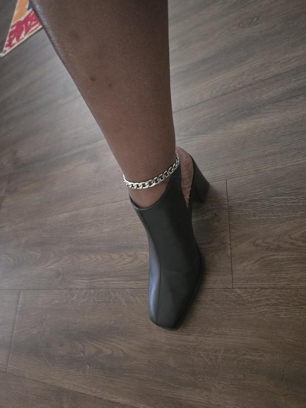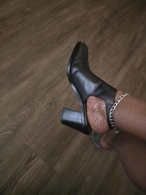 Love, love, love these shoes! I have been a fan of Franco Sarto for many years and have several pairs of shoes that continue to stand the test of time. These are gorgeous, supple, buttery leather. So soft against my feet. Just glide right in. The heel is the perfect height and has a bit of a curve that makes them look edgy and classy. The snipped, squared toe allows for more roomy comfort compared to a pointed toe. What can I say, still love the wonderful smell of the genuine leather too. Extremely pleased with these beautiful shoes. I may purchase in another color.