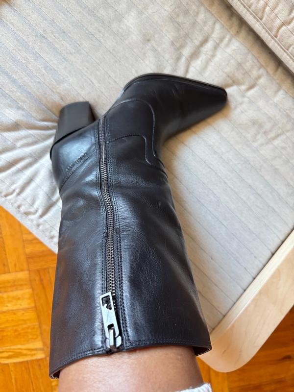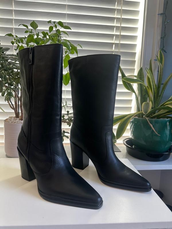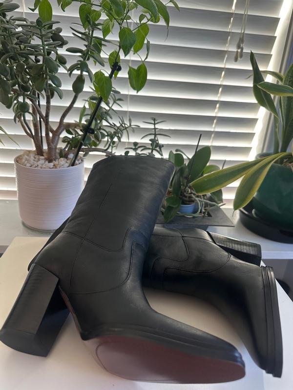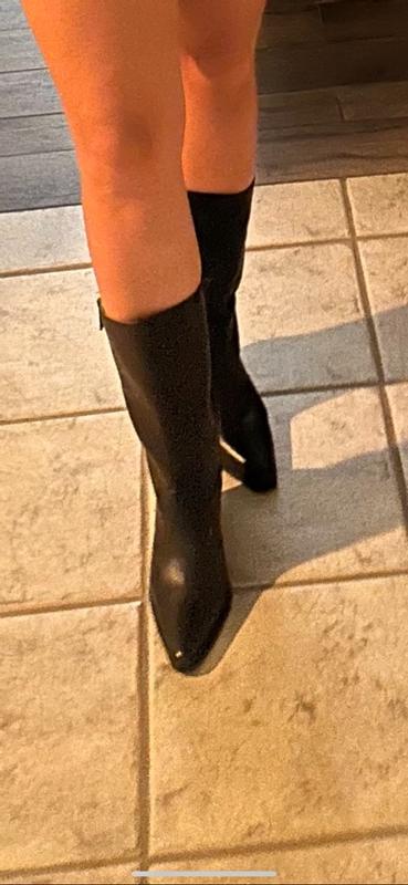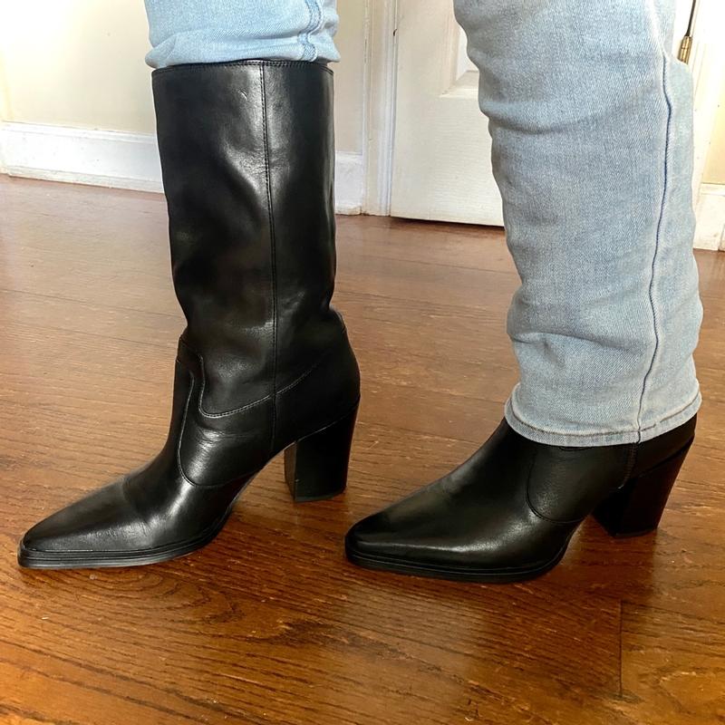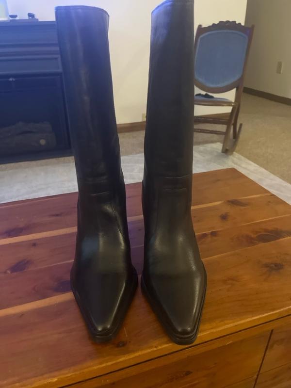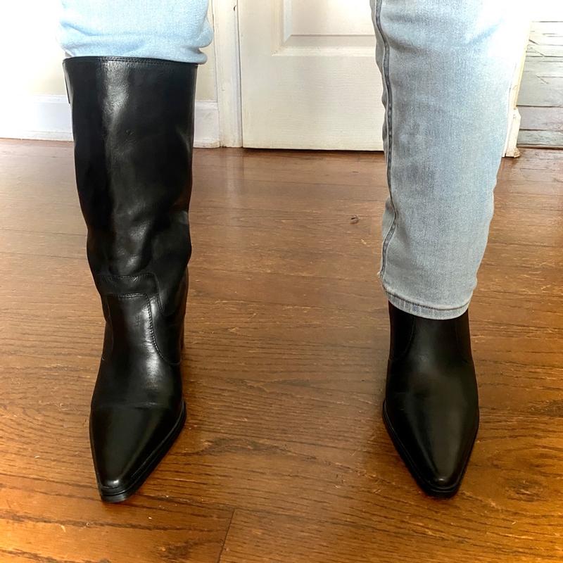 I had high hopes for these boots; however, I found them to be uncomfortable. I typically wear a size 9 but often opt for a half size larger in styles such as this. The leather is exceptionally nice and soft. Although I do not have a wide foot, these boots still felt somewhat tight, and I experienced slipping of my heel while walking. If I were to select a larger size, they would likely be too loose. Consequently, I have decided not to keep them due to the heel slipping and their narrow fit. Furthermore, the height of the heel may result in discomfort if I stand for an extended period, given the narrowness. Overall, I considered them to be uncomfortable, although they possessed a beautiful aesthetic.