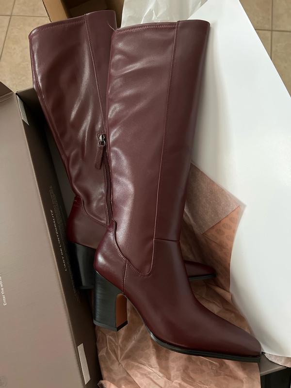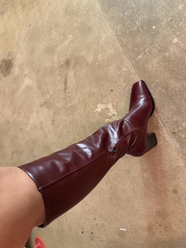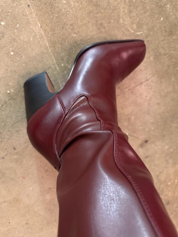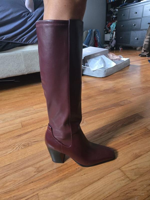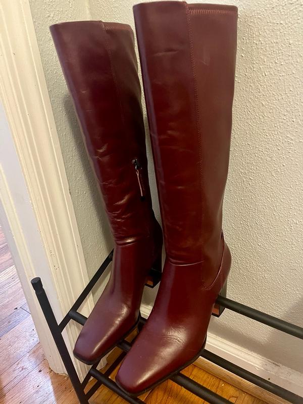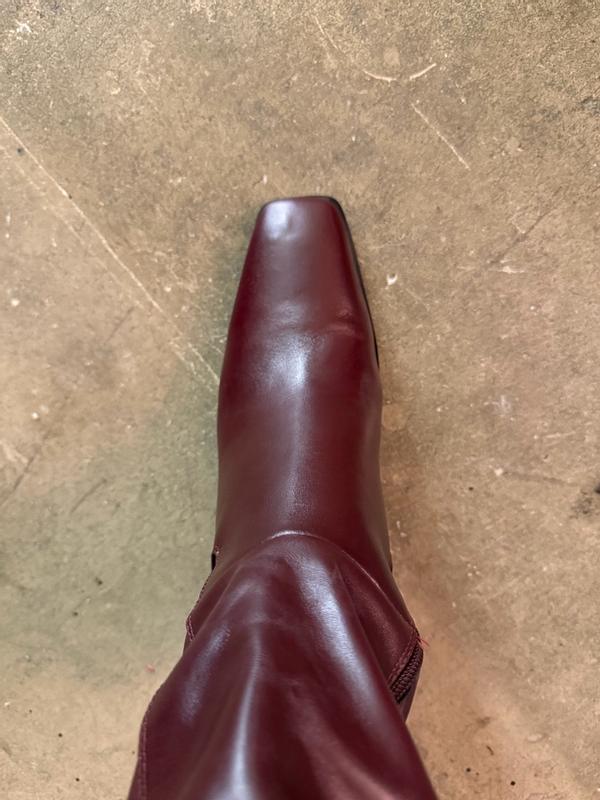 I love how these can be such a transitional type of boot! With fall approaching they're easy to pair with skirts, and when the weather takes a turn they will be perfect for the fall/winter weather. I love the rich feel of the leather and as soon as I saw the dark wine color I knew these would be my new go to boot! I can easily throw them on to dress up an outfit and feel more put together. The longer squared off toe and bigger heel make them look edgy yet professional. The top of the boot and calf do have some stretch, and they're easy to put on with the inside zipper. The heel isn't very high so they are comfortable to wear for an extended period of time. They're a perfect, comfortable choice that can be paired with so many outfits and styles!