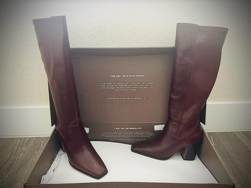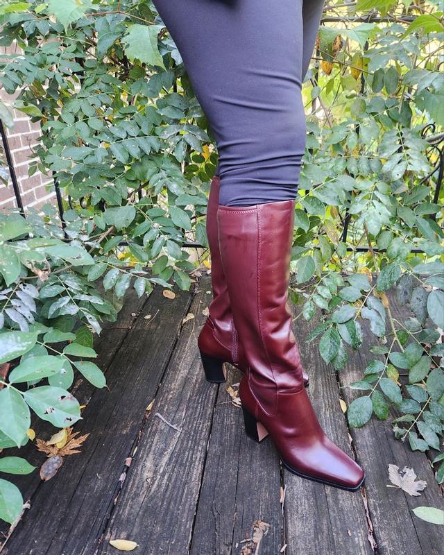 These boots feel very well made. The leather is beautiful and has a slight sheen to it. I got mine in red. The tone is a rich mahogany tone and wearable in the sense that it can compliment many different colors though this fits more in my fall wardrobe personally. The fit is slightly narrow though and not flexible so beware those with bigger calves and wide width shoe sizes. It has a zipper closure that isn’t full length. I usually make sure the boots I buy have a full length zipper so they’re easy to take on and off. It has a smooth gripping rubber outsole which I loved. The block heel made these easy to walk in but the height on these with no platform do have a steep arch and might cause some discomfort on the ball of the foot because there seems to be little to no padding there. Overall, I’d recommend these because of the craftsman and beauty of the leather and the design which I value over comfort. If comfort is your priority then these may not be for you but they are definitely worth a try considering adding some simple shoe inserts can help ease discomfort.