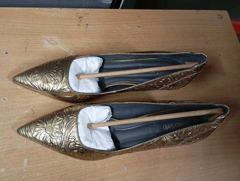 Beautiful shoes, but size down a whole size. Only half size down was available for me, so I got it anyway. I put some heel pads which help, but still wish it was a snugger fit.