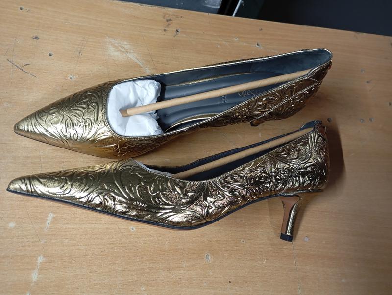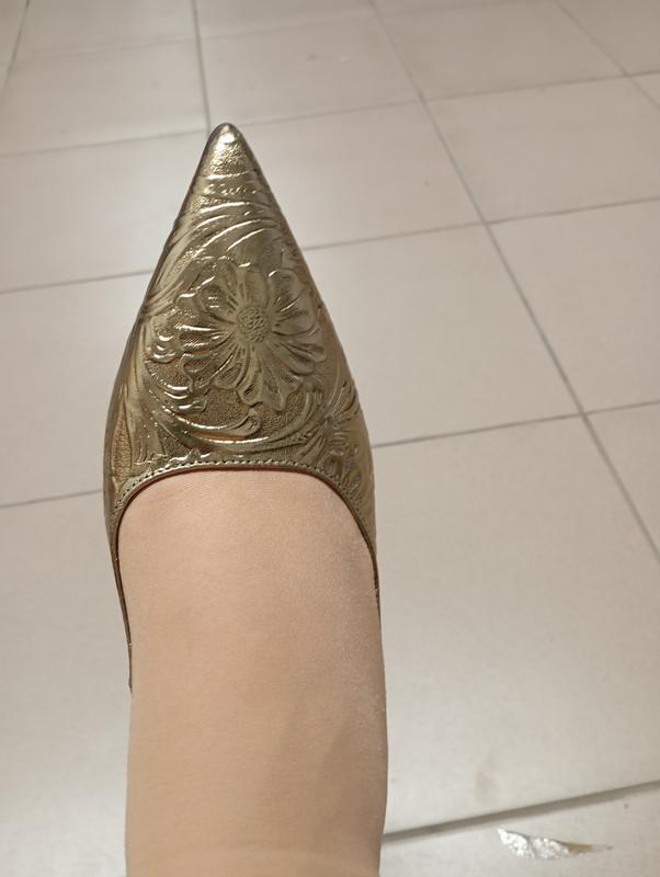 These pumps are wonderful. The heel is small and classy. They’re chic, simple and perfect for day or night. They’re very comfortable and I was able to stand in them all day without pain. 4 stars because the sizing was slightly off. They run large so I’d recommend sizing down a little.