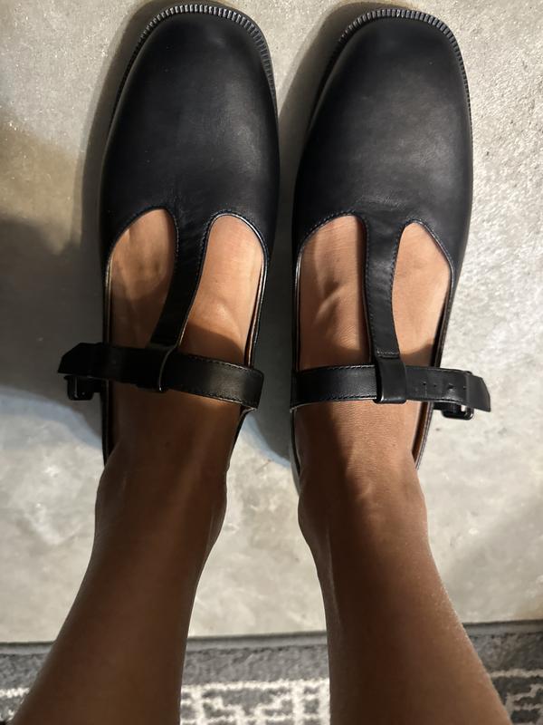 These shoes are beautiful. I bought them for the low heel height, real leather, and the t-strap. I am a 7.5 and bought that size for these shoes—the shoes are too big, with my heel lifting a bit while walking. I will be exchanging for a half size down.