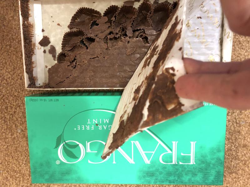 I have been around Frangos since the 60s. I love them and order them all of the time. This last order I ordered them when they were on sale to give as christmas gifts. I am so embarrassed to find out that the ones I gave as gifts were melted and rechilled. Absolutely unexpectable. I will never order them again. What a shame and on top of it, it is too late to return them. What a waste.