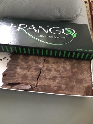 Had an extremely strong mint smell which was fine but, the chocolate itself had the texture of old fudge with a hard chocolate coating. Not bad, just not for me.