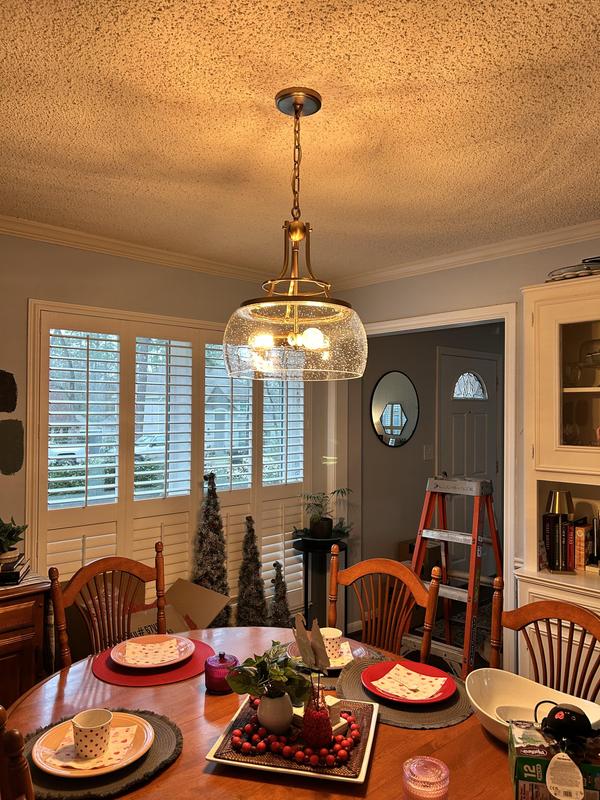 Charleston Warm Brass Pendant Chandelier 16" Wide Modern Dimmable LED Clear Seedy Glass 3-Light Fixture for Dining Room Living House Home Foyer Kitchen Island Entryway Bedroom