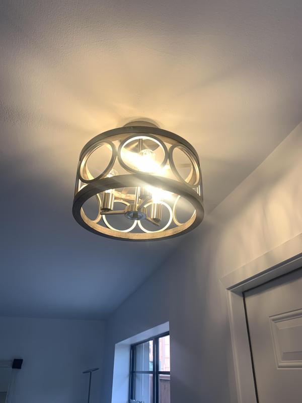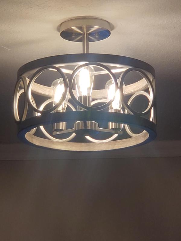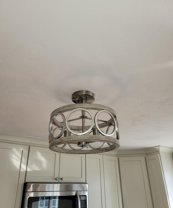 Salima Rustic Farmhouse Ceiling Light Semi Flush Mount 16" Wide Brushed Nickel Gray Wood 3-Light LED for Bedroom Living Room House