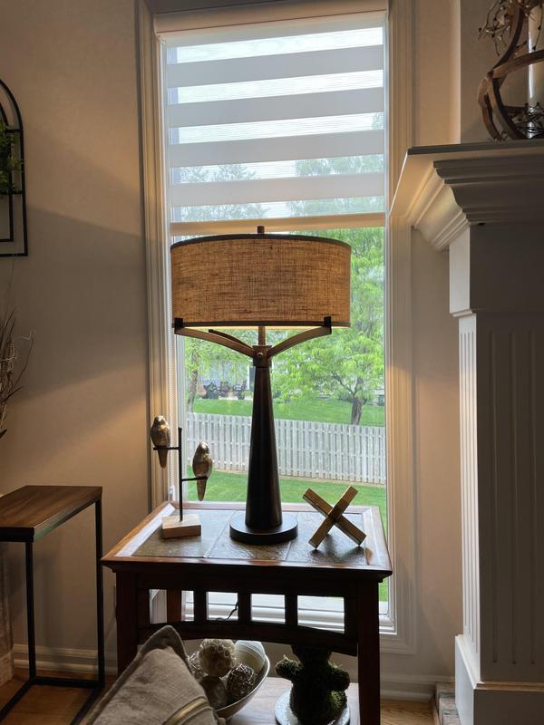 Love this lamp. Perfect design for our rustic basement. Nice lighting and good quality shade.