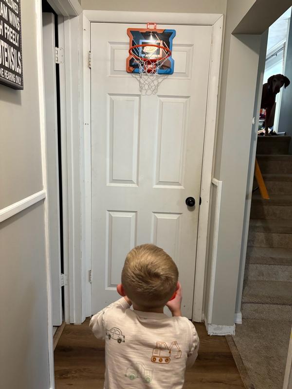 My son loves this hoop. Great for inside use! It take a few minutes to assemble and the net doesn’t stay the greatest, we’ve had to fix it. The ball is soft and great for small hands! It stays securely on the door.