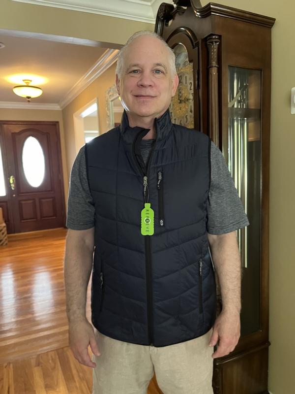 Great vest, light weight and warm. Fits comfortably and looks great.