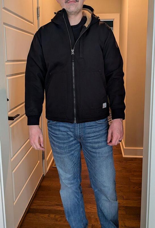 Solid jacket, reminds me of a softer Carhartt look. Really cannot beat this for the price. It does come a little short like the rest of Free Country jackets I have purchased but cannot be beaten on quality and price. I really wish all of the jackets were about 2" longer. Otherwise, Free Country makes the best jackets hands down. I stumbled across them a few weeks ago and was so impressed that I kept buying more. I'm 6'3", 225 lbs. , bought size large.