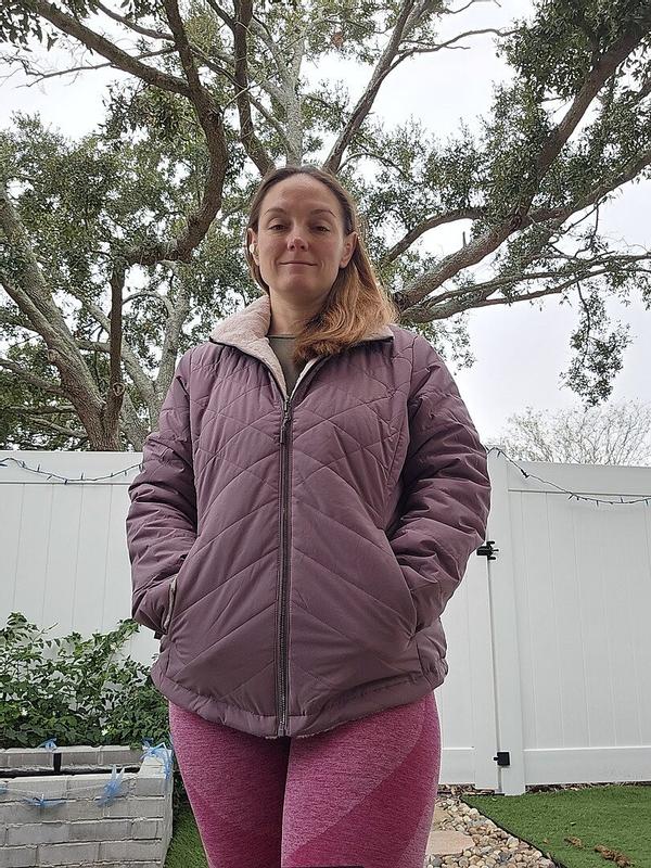 I don't normally like really fuzzy sherpa kind of material, but this one is perfect! It feels more smooth and nice and warm. Then when I don't want it to be quite as warm, I can turn it inside out since it's reversible and have the quilted part inside. Either way its perfect for fall or winter. I like that each reversible side is different colors. The purple and the light pink colors both go with my style and the clothes I typically wear.