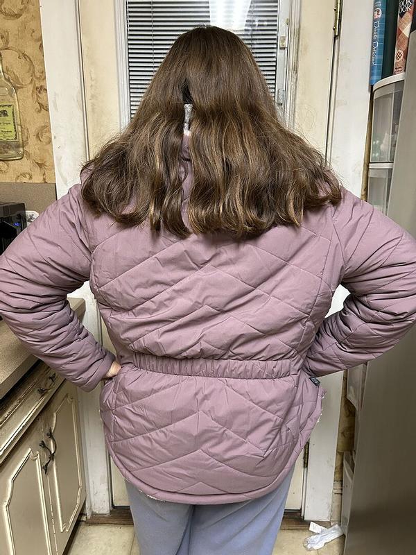 This jacket is very cute, very confort. . . warm is perfect for me, and the color pink is a plus, mi first time trying this brand and i love it