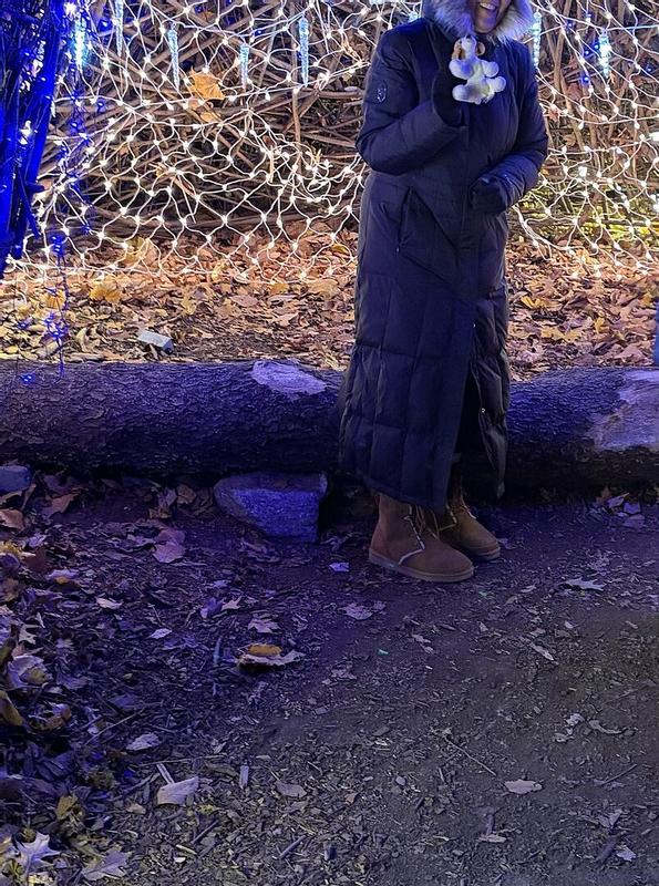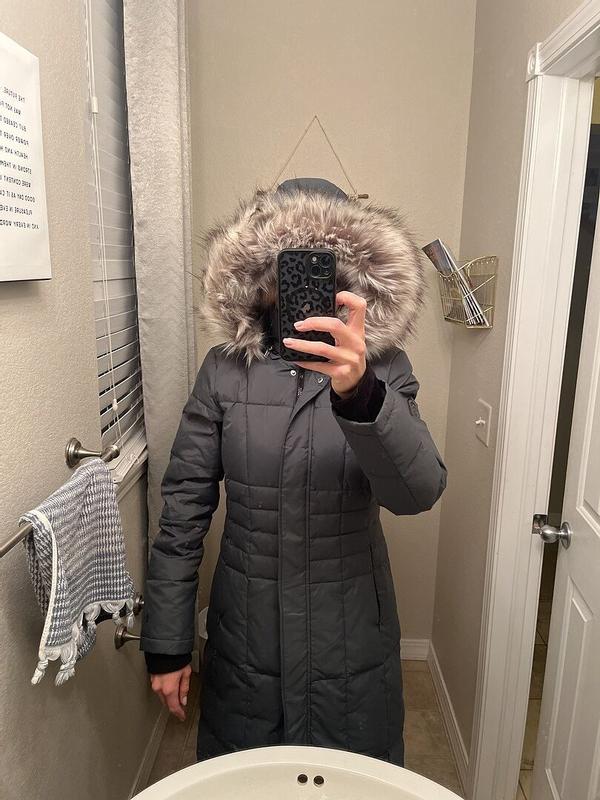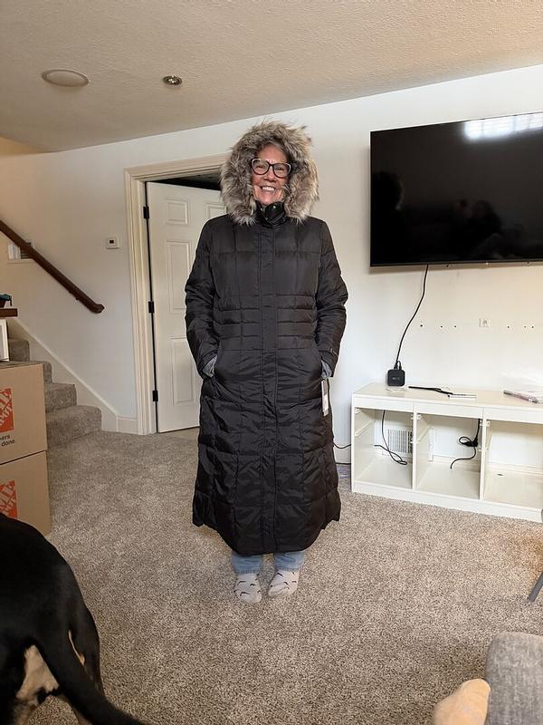 Length and roominess of fit was perfect without being bulky. Can wear two light base layers comfortably; would not wear a bulky fleece. Warm enough for 15 degrees Fahrenheit so far. Hood with faux fur trim is perfect for windy days! The only issue is the zipper which has been mentioned here many times -- the double zip is poor quality and difficult to get started or get unhooked. I do my best to avoid this by leaving it "zipped" at the bottom and close one of the snaps above it, then just step in and out. A good value when on sale!