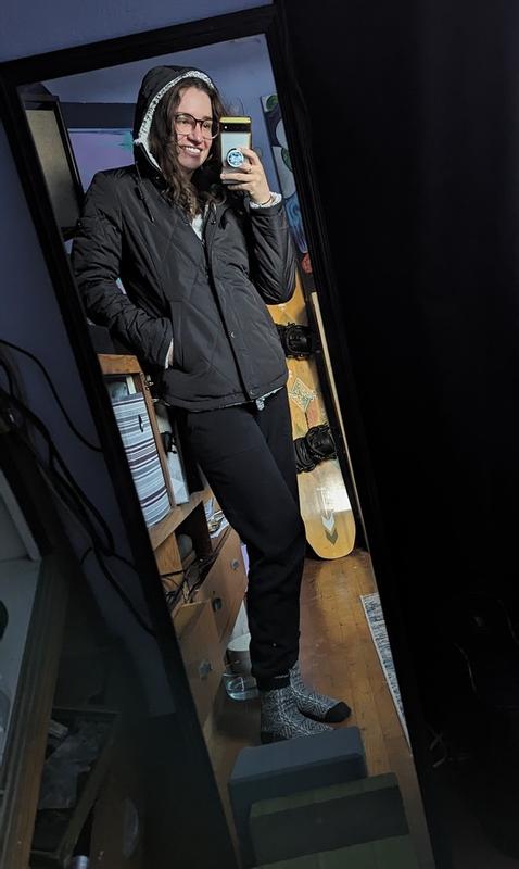 Wearing jackets is typically a no from me. I am a vest wearing gal. However, this jacket has made it so nice to wear without feeling stuck and can't move around while also being thick and warm.