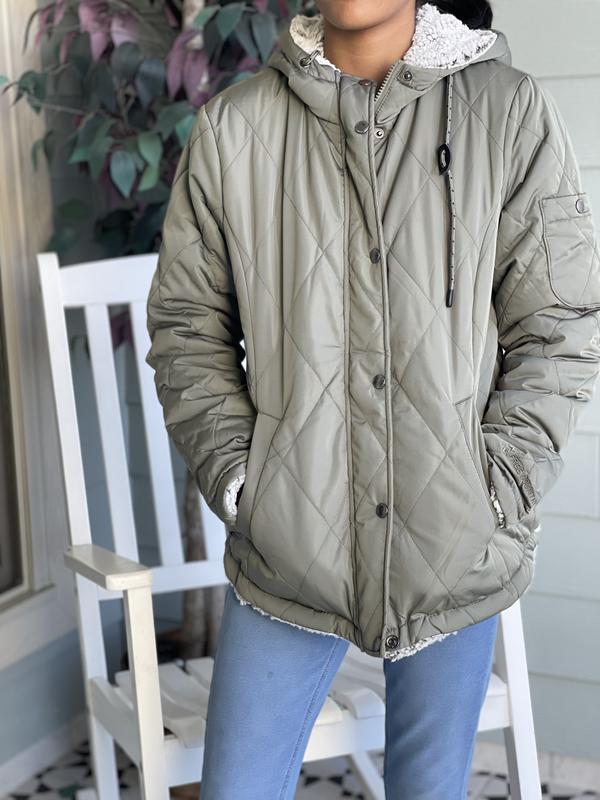 Such a nice jacket, the fit, the color. Super soft on the inside and beautiful all around.