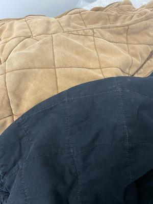 Feels heavy and thick. The sleeves are just super wide and it feels like wings. So I roll the sleeves up. But great for oversized. I’m 5’4 and got size M but could’ve gotten size S