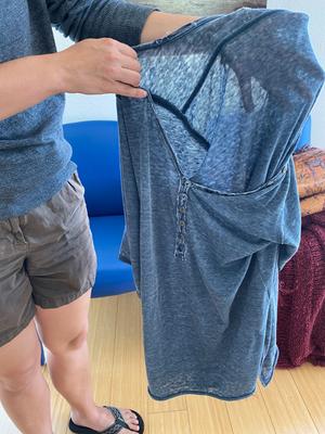 Lovely soft cotton knit, just what summer weather lets you enjoy. How many buttons will you undo?
