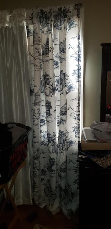These French Country Toile draperies really look nice in my bedroom. The material is good and they are well-made. They have the added feature of being extra thick to block out light and keep the room dark. I like the charcoal gray color and countryside design.