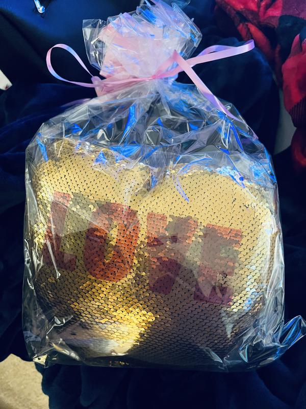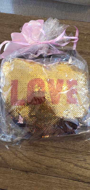 This gift set is so sweet, it's so well put together and really made my day to receive it! The soap flowers are so cute I hesitate to even use them, but will soon! The hand cream is lovely, and the reversible sequin pillow is just adorable!! Loved everything.