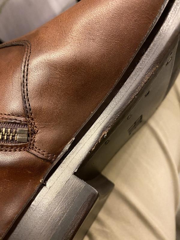 Boots were delivered and they have scratches on one boot and it looks like they have been worn. The last pair that I bought didn’t have the amount of wear that this set has. There is a very deep crease on one of the boots. Looks terrible, not sure how it made it through Quality Control.