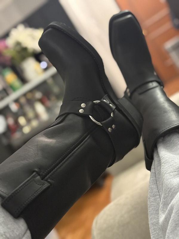 My Frye Harness 12R boots, opened the box and saw a tradition that stood the test of time and refused to change just to fit in with the norm. . . Thank You! Side by side, my first pair from 1982 to this purchase of 2025. The pale baby blue box, the inserts, stack heels, that sole that will protect your feet, real leather, and that squared toe. The only thing that changed in all of these years was the size of my feet. Make the purchase, can't do it in one shot, make payments or save up your money until you can. Learn how to take care of your leather boots. My father taught me as a child when all we had was real leather shoes, not sneakers, not pleather. My babies from '82 were conditioned with black shoe polish, waterproofing cream, a good brush and cloth. They were always placed back in the box and never thrown around. The new ones are going to be treated the same way. . . trust me. So, to everyone at the ORIGINAL Frye Company, again, thank you!