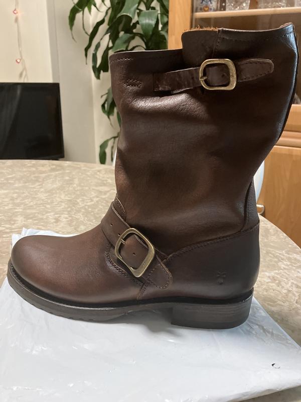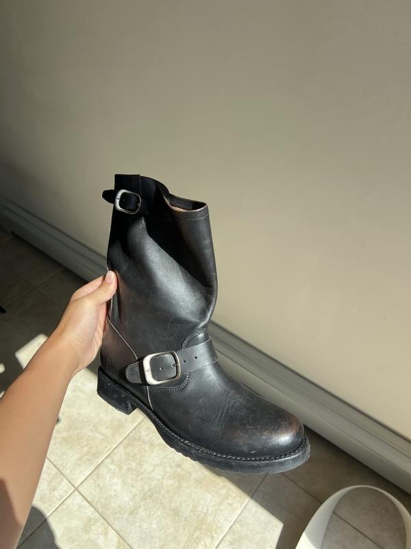 The leather is floppy on this of boot so it is not as pictured. They look more like pirate boots. Not just that, but the sizing chart is not accurate and my normal size did not fit. When I tried to exchange for a different size it return I was told I couldn’t do anything about it. Frye does not stand by their products, which is why they don’t find a solution when there is a problem with their products.