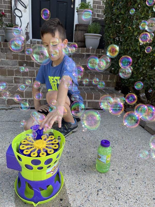 This is a super fun product for playing outdoors with the children and the kids loved the bubbles. Easy to use and set up but does not come with batteries so make sure to purchase those before planning to use the item.