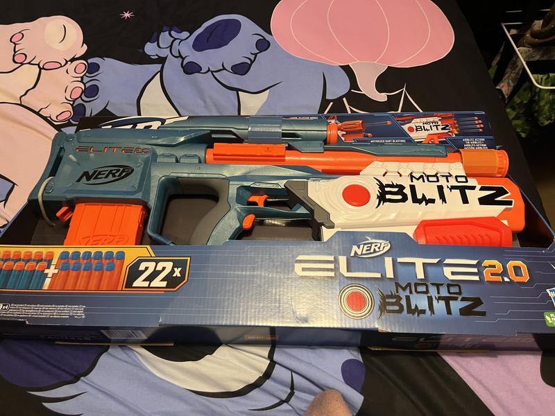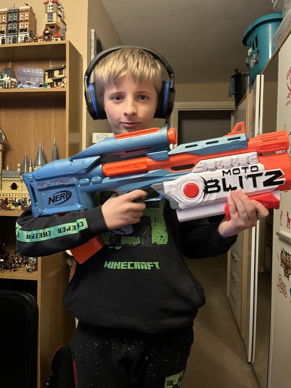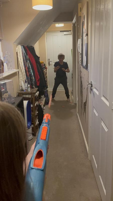 I’m a newcomer to Nerf, though I have friends at work who are big fans and rave about the stress relief properties of chasing each other about firing foam darts so I was keen to try out this Nerf Elite 2.0 Moto Blitz blaster and see what all the fuss was about. On first impressions, this blaster is BIG. It’s recommended for ages 8+ and it really is quite weighty and large, so you’d need to be a fair size child to be able to use it comfortably. It has two shooting modes; Airblitz which fires 6 darts at once that you pump up to pressurise, which is great fun, and a motorised blast that fires 10 darts in quick succession. The motorised blaster takes 4 x AA batteries and makes a whirring noise when you prep and pull the trigger, and the darts fly a satisfyingly long distance! You load up the 10 darts in a clip behind the trigger and there’s a handy access window at the back of the blaster to easily clear any jams. One thing I appreciated was the plastic free packaging – so happy to see brands moving towards this eco-conscious approach. My partner and I had a ball taking turns at playing with this around our house and garden and I can definitely see the appeal. Now we just need another one for a fair game - Bring it on!
