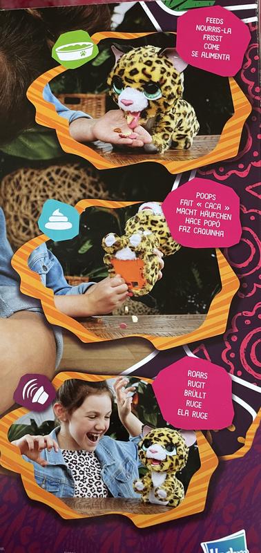 My kids love this sweet animatronic leopard and it's interactive play with them that keeps their imagination going for hours of fun. This little leopard is a great quality as my little ones have dragged and dropped so many times and this little leopard has kept going which is one of the many reasons I choose Hasbro for the quality and Value , making toys that last.