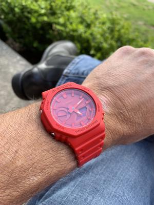 Great all red watch that pops! It adds color to your outfit. I would buy this again. Looking to get the all black in the future. I wanted the basic functions model, not into Bluetooth or atomic time keeping. Keep it simple.