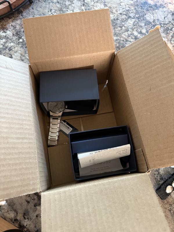 - Strap: Silver-tone, Stainless steel with fold over clasp closure