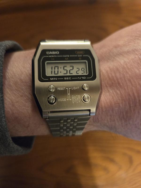 Experience the timeless charm of a 52QS-14B revival that brings the 1970s to today. The revived design boasts a full-metal case expertly polished to a high-quality finish. The iconic front buttons of the original model are replicated in metal for an added touch of style. Subtly engraved mode indicators and premium shine exude a sense of luxury to an impressive retro look that stands the test of time. Style #A1100D-1VT.