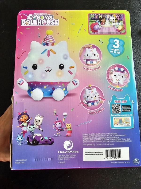 My daughter adores the Sprinkle Party Cakey Cat Plush! She’s the perfect size for both playtime and naptime. Cakey’s dressed in her fun celebration outfit and has three awesome modes: silly when turned upside down, party when shaken, and talking with a button on his hat. She loves how interactive she is and how she fits right in with her Gabby’s Dollhouse collection. It’s a fantastic toy for kids who enjoy imaginative play and makes for a delightful gift!