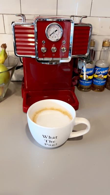 I loved the look of this retro espresso machine, but the frother does not work! The dial/nob on the side that's supposed to make the frother work, does not move - it is glued solid to the side & is "decorative" only - that was a HUGE DISAPPOINTMENT - & nothing in the directions/manual mentions this or how it was supposed to work if it Did work. Also, there is a plug in the back, that is not mentioned anywhere in the directions/manual, that plugs water from going into the machine to make coffee. We nearly burned out the motor before we realized it was there & needed to be removed before use!!! VERY, VERY DISAPPOINTING!!!