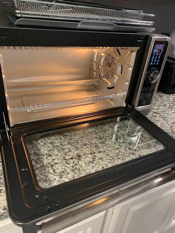 The 32L Toaster Oven with Touch Screen from Galanz is AMAZING. If I could I would take out my normal oven and put in more counter space. This really is amazing and has replaced three appliances (toaster, oven and old air fryer) I use typically in a week. You really do need a lot of counter space for this, because this isn't a small appliance. After unboxing this it was ready to go once I washed all the trays. I have tried out just about all of the functions minus the dehydration. It really does it all. With having a 5 year old we make a lot of chicken nuggets. With using the air fryer option on this not only do they make the nuggets taste like they are from a popular fast food restaurant but they cook in half the time than it would take my normal oven to preheat. This really cooks the food nice and even. I have even found with this that I can air fry not only larger portions but also fries and nuggets at the same time. This is also non stick which is a must in my book. It makes clean up nice and easy. Plus you can put all the trays into the dishwasher as well. The display is nice and easy to use. I love the LED Digital display. It lights up nice and bright. There is also an interior light so you can see your food cooking nicely. The size is pretty big and it does take up a lot of counter space. But at the end of the day this also does replace a lot of other appliances so really it is a win win.