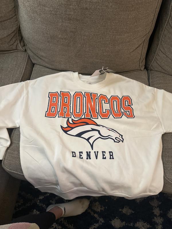Women's White Denver Broncos Sunday Drives Oversized Crewneck Pullover Sweatshirt